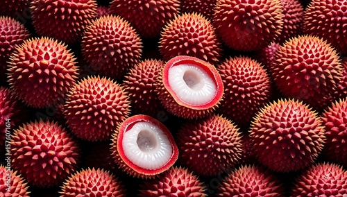 Lychee peel texture spiky red surface, studio close-up, 4K realism