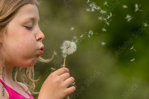 girl, blond, long hair, hair, portrait, children, laugh, merry, fun, pretty, young, blowball, taraxacum, spring, summer, blow, sitting, play, schoolchild, look, childhood, small, pretty, outside, nature, natural