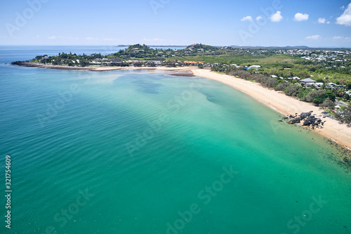 Mackay region and Whitsundays aerial drone image with blue water and rivers over sand banks
