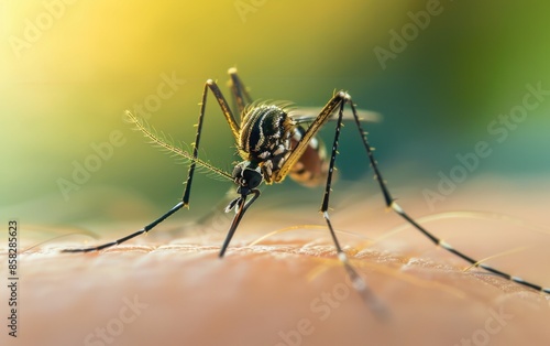 Macro Aedes aegypti Mosquito. Close up a Mosquito sucking human blood