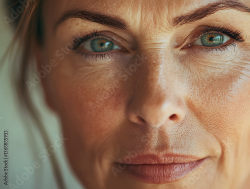 Macro Beauty Portrait of Middle-Aged Woman Embracing Natural Aging – Authentic Beauty Photography