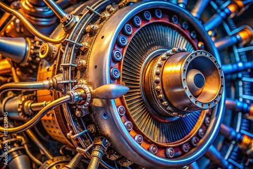 Macro Close-up of Aircraft Engine Components: Intricate Metal Details