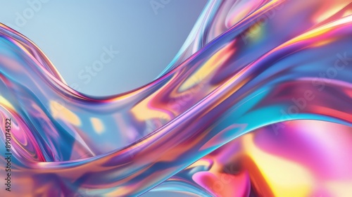 Macro glass 3d Y2K render abstract background. Transparent glassmorphism modern texture. Holographic curved wave in motion. Gradient design element.