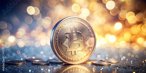 Macro image of a glowing promotional coin with currency symbols and copy space concept as A detailed close up of a promotional coin featuring various currency symbols emitting a glowing light against