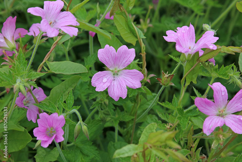 Macro image of pink Cranesbilll flowers, North Yorkshire England