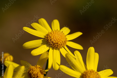 Macro of eastern groundsel (Senecio vernalis), yellow flower