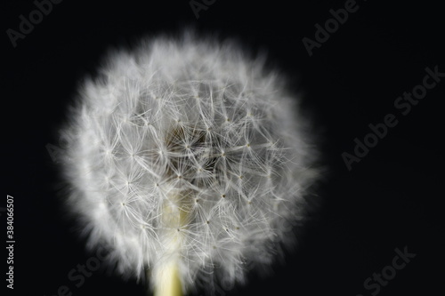 macro on dandelion on black background
