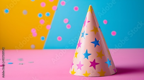 Macro perspective of a party hat in a minimalist environment AI generated illustration
