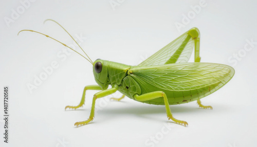 grasshopper, locust, green, insect, antennae, isolated, white, background, surface, half face, closeup, macro, small, tiny, bug, animal, wildlife, nature, arthropod, invertebrate, fauna, biology, zoology, natural, outdoors, indoor, studio, shot, detail, orthoptera, wing, leg, head, chested, abdomen, vibrant, bright, camouflage, jumping, herbivore, single, object, nobody, still life
