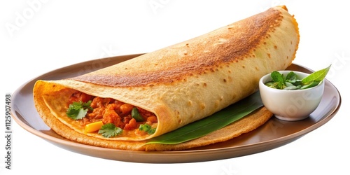 Macro Photography: Crispy Masala Dosa, Indian Food, Close-up, Delicious, South Indian Cuisine, Plate, Isolated Background, High-Resolution Image