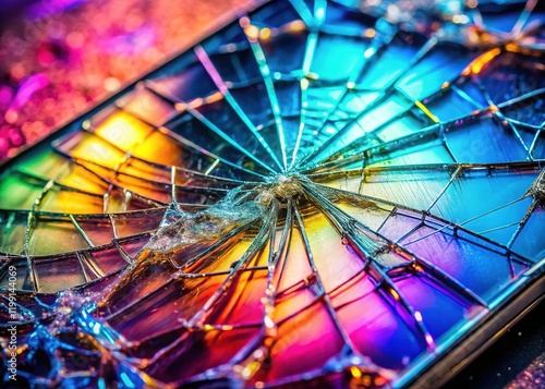 Macro Photography of Cracked Smartphone Screen: Close-up Detail of Broken Mobile Display