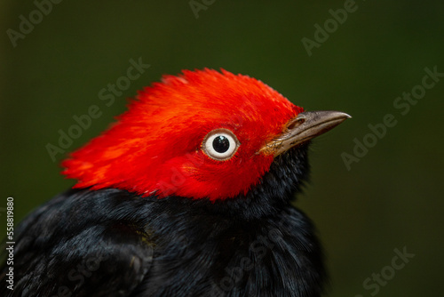bird, animal, nature, biodiversity, wildlife, peru, macro, tropical, amazon, jungle, avian, fauna, red, head, beak, portrait, look, eye, feather, wild, colours, exotic, black, colourful, green