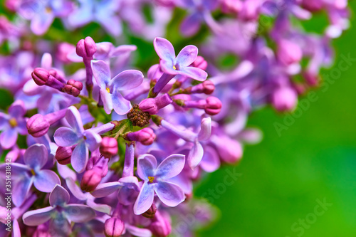macro purple lilac flowers on a branch in spring. blurred background, color