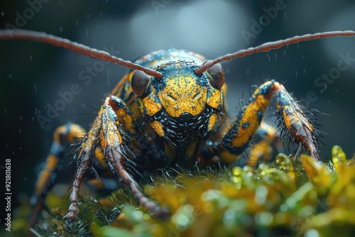 Macro shot of a beautiful closeup of a bright and colorful insect