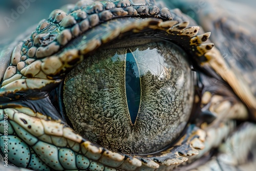 Macro shot of crocodile's eye. Beautiful extreme close-up of alligator. Wildlife and wild nature concept. Banner, wallpaper.