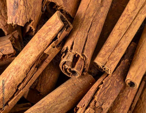 Macro shot of dry cinnamon bark revealing the intricate layers inside