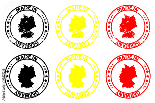 Made in Germany - rubber stamp - vector, Germany map pattern - black, yellow and red