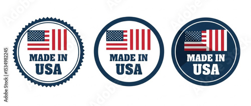 Made in USA Vector Icon Badges | American Flag Product Label Designs for Patriotic Marketing and Retail Branding