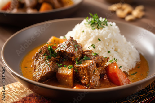 Mafé (West African Peanut Stew) with Tender Beef Chunks, Steamed Rice, Parsley, and Peanuts – Authentic African Comfort Food