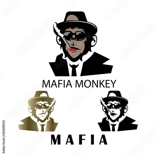 logotype, mafia, illustration, monkey, mascot, face, head, sport, gorilla, character, symbol, ape, design, cartoon, vector, primate, animal, beast, strong, gaming, jungle, chimpanzee, signs, team, icon, game, club, isolated, chimpanzee, graphic, wildlife, power, wild, art, tattoo, smoke, angry, zoo, badge, king, emblem, africa, logotype, background, danger, forest, cool