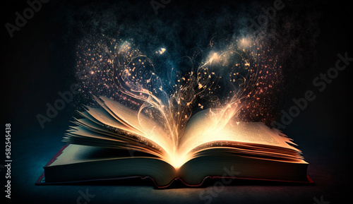 book, magical, dark, light, open, old, literature, magic, antique, library, fairy tale, shine, page, bible, education, bright, glow, mystery, fantasy, religion, story, black, paper, aged, dream, imagination, wisdom, vintage, wood, tale, study, magician, school, history, background, star, table, smoke, text, art, generative, ai, ancient, information, religious, abstract, wooden, gothic