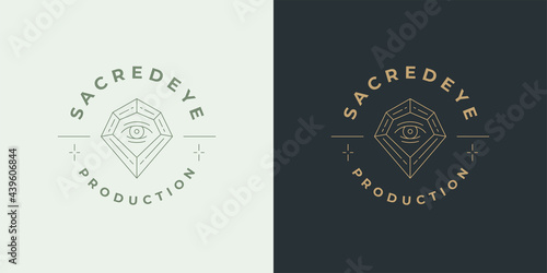 Magic eye with diamond logo emblem design template vector illustration in minimal line art style