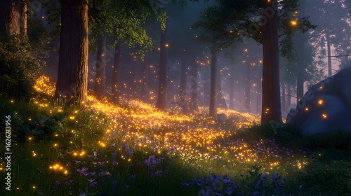 forest, night, magical, enchanting, tree, nature, fantasy, illustration, digital artwork, glowing, light, dark, wood, scene, landscape, environment, mystical, whimsical, serene, calm, peaceful, twilight, scenic, beauty, artwork, artistic, creative, dreamlike, evocative
