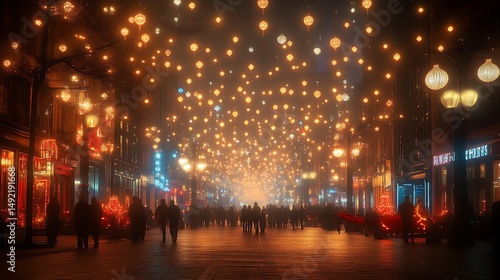 night, street, light, fog, city, people, walking, winter, christmas, holiday, festival, celebration, magical, warm, cosy, romantic, beautiful, dark, glowing, illuminated, atmosphere, scene, urban, landscape, background, texture, design, element, season, december, jan, evening, ambience, globe, lantern, bright, soft, blur, dreamy, fairy, wonderland, joy, happy