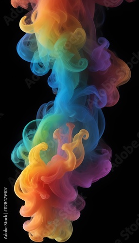 Magical Swirls of Rainbow Smoke Dancing on a Black Background at Night