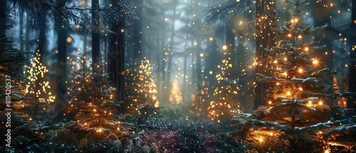 magical trees stood the Christmas forest, aglow with radiant lights.