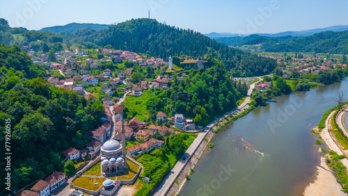 minaret, mosque, riverside, city landscape, panorama, forest, historical building, abandoned, stronghold, clock, historic, bosnia, muslim, castle, city, historical, tour tourism, aerial, bosnia, house, building, mountain, islam, herzegovina, landscape, travel, river, fort, culture, blue, fortress, hill, stone, clock-tower, ancient, history, mediaeval, ottoman, old, town, balkans, sky, tower, architecture, landmark