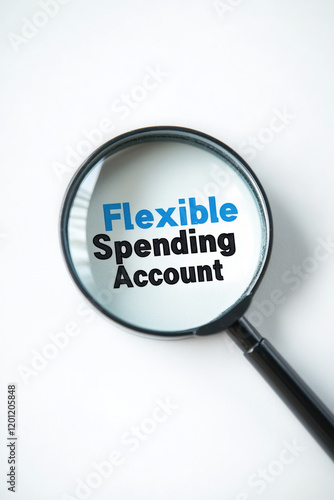 Magnifying glass highlighting the words 'Flexible Spending Account' in blue and black text on a white background.