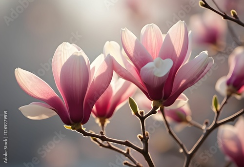magnolia, bloom, soft light, pink, white, flower, branch, spring, delicate, nature, floral, blossom, serene, gentle, pastel, beauty, closeup, botanical, flower petals, elegant, soft focus, glowing, airy, fresh, seasonal, blooming, romantic, peaceful, bright, lush, radiant, warm, dreamy, fragrant, tender, subtile, organic, natural, purity, garden, aethereal, vibrant, graceful, charming, refreshing