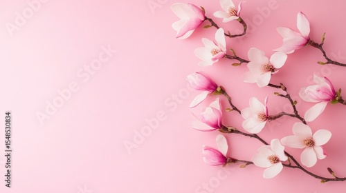magnolia, flower, spring, pink, white, blossom, nature, floral, beauty, pretty, springtime, pink flower, plant, branch, light, colours, design, still life, floral arrangement, topview, isolated, spring flower, blooming, decoration, minimalist, art, texture, soft, pastel, background, wallpaper, decorative, design element