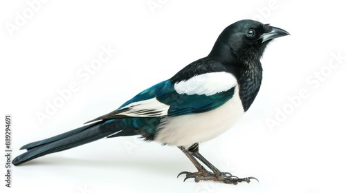 Magpie full body on white background