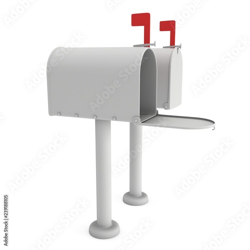 Mailbox with open door and raised flag. 3d render illustration isolated on white background.