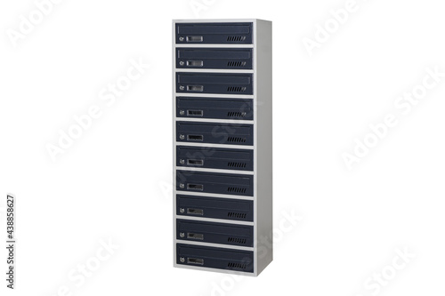 Mailboxes in the condo. metal mailbox with lockable center in condo. Mailbox on the white background isolated