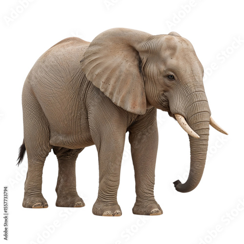 Majestic African elephant with large ears and tusks isolated on a transparent background