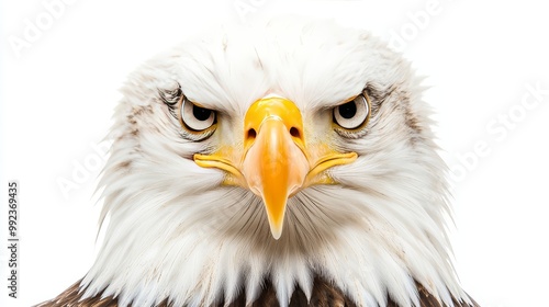 Majestic Bald Eagle Close-Up on White Background - Intense Gaze and Detailed Feathers