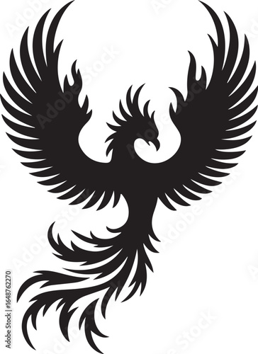 phoenix, bird, mythical, legendary, fire, rebirth, symbol, majestic, powerful, rising, silhouette, black, icon, design, art, mythology, fantasy, creature, spirit, transformation, renewal, hope, strength, freedom, victory, elegance, graceful, unique, creative, abstract, graphic, illustration, iconic, symbolic, animal, wing, tail, feather, stylised