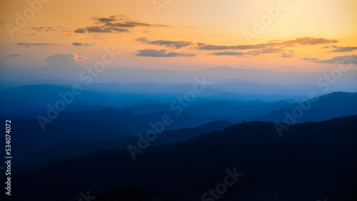 Majestic blue mountains landscape in sunset sky with clouds ,Chiang mai ,Thailand