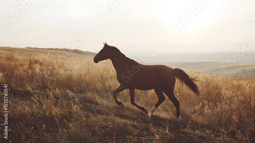 Majestic brown horse galloping freely, embodying wild grace and untamed spirit