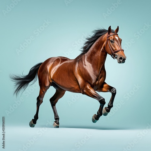 Majestic Brown Horse Galloping Gracefully on Light Background