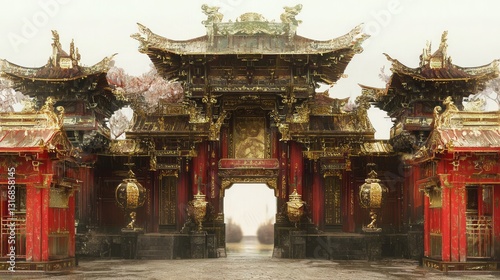 Majestic Chinese Palace Facade with Ornate Architectural Details