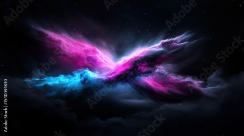 Majestic cosmic rift where bright pink and blue nebulae illuminate the depths of space with their ethereal radiance
