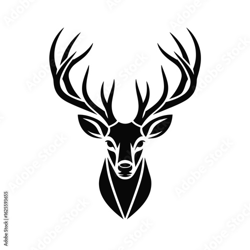 cervid, stag, antler, animal, wildlife, nature, forest, head, silhouette, black, and, white, graphic, icon, logotype, design, vector, illustration, mammal, buck, cervid, majestic, elegant, symbol, art, creature, isolated, background