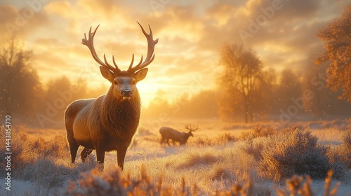 Majestic Deer in a Golden Sunset Landscape Wildlife Photography Nature Scene with Antlers and