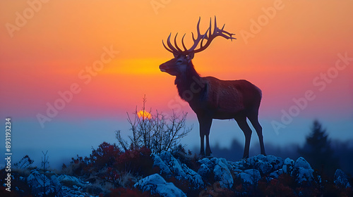 silhouette, sunset, landscape, majestic, antler, nature, wildlife, animal, photo, sunrise, mountain, sky, forest, wild, stag, golden hour, beautiful, scenery, timberland, fauna, light, background, beauty, colours, art, image, photo, picture, digital artwork, inspiration, peace, harmony, calmness, peaceful, serenity, calm, relaxation