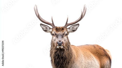 Majestic Deer with Antlers on White Background - Wildlife Animal Portrait for Nature and Wildlife Stock Photography