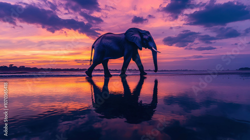 elephant, wild, shore, dusk, sunset, nature, animal, landscape, tranquil, beauty, safari, habitat, large, majestic, outdoors, unique, calm, peaceful, scenery, wildlife, silhouette, sky, water, evening, travel, vibrant, scenic, horizon, tranquil scene, exploration, leisure, environment, scenic view, natural world, serene, river, coast, flora, fauna, adventure, earth, wanderlust, culture, picturesque